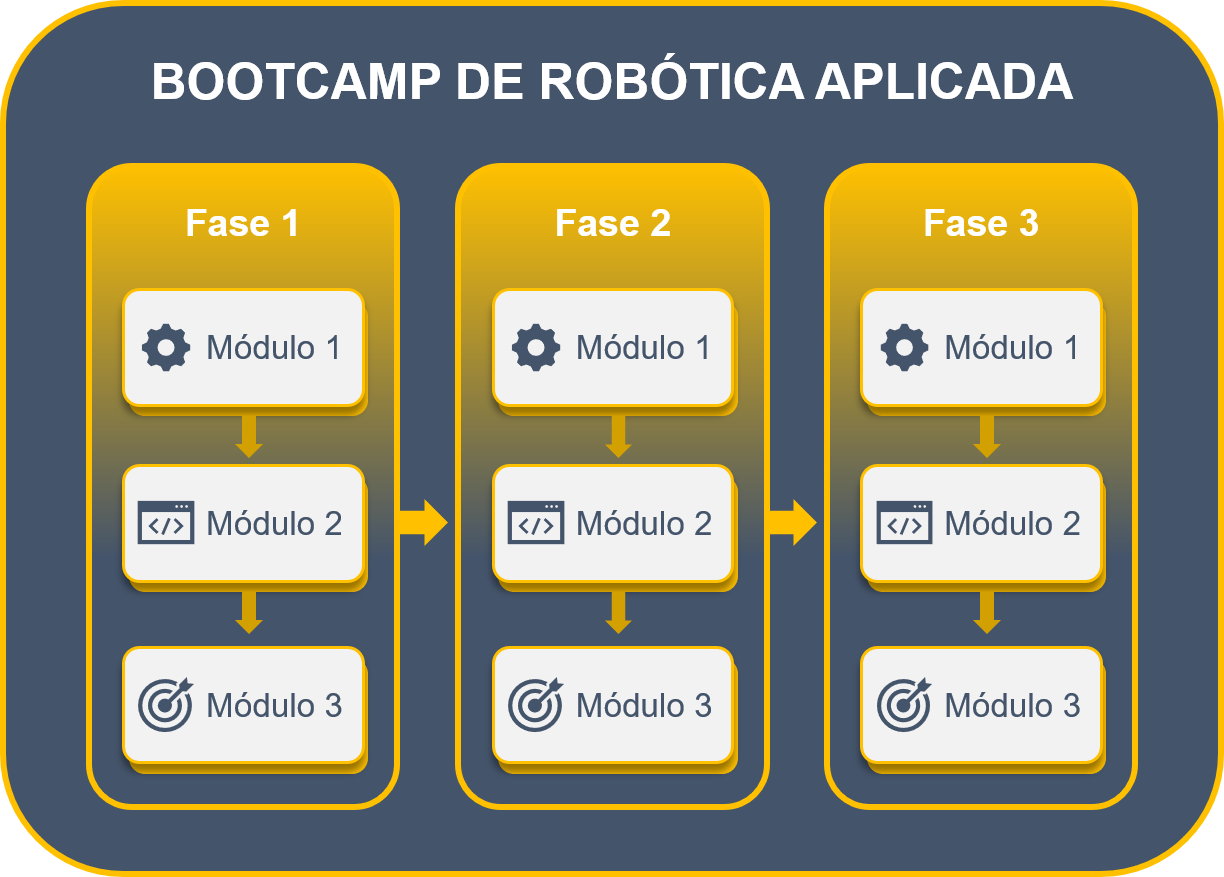 Robótica aplicada básica con módulos de 9 horas cada uno.